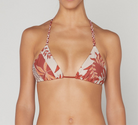 The traditional triangle style is elevated with braided straps, adding a touch of texture and interest. The print features an earthy palette of cream, mahogany, and other warm hues, creating a natural and organic vibe.