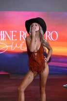 Fringe detail along neckline and hips for sexy, playful coverage